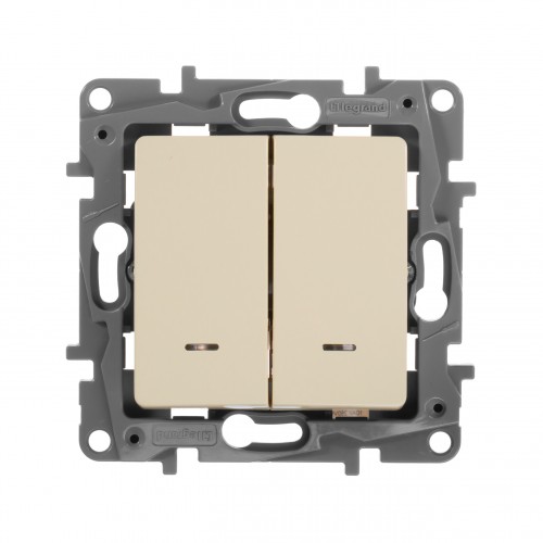 Выключатель двухклавишный с подсветкой - Etika - 10 A - 250 В~ - слоновая кость