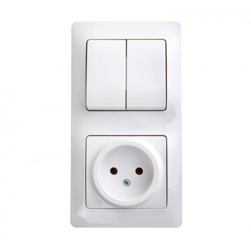 GLOSSA Блок: розетка+выключатель двухклавишный белый