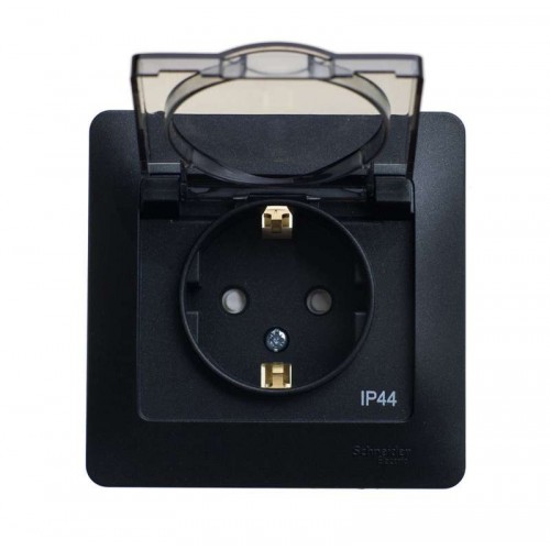 GLOSSA Розетка 1м в рамку с заземлением, со шторками, с крышкой антрацит в сборе