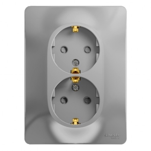 GLOSSA Розетка 2м с заземлением со шторками в сборе алюминий