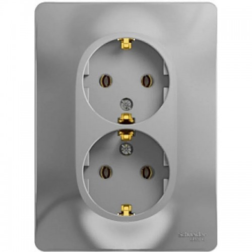 GLOSSA Розетка 2м с заземлением в сборе алюминий